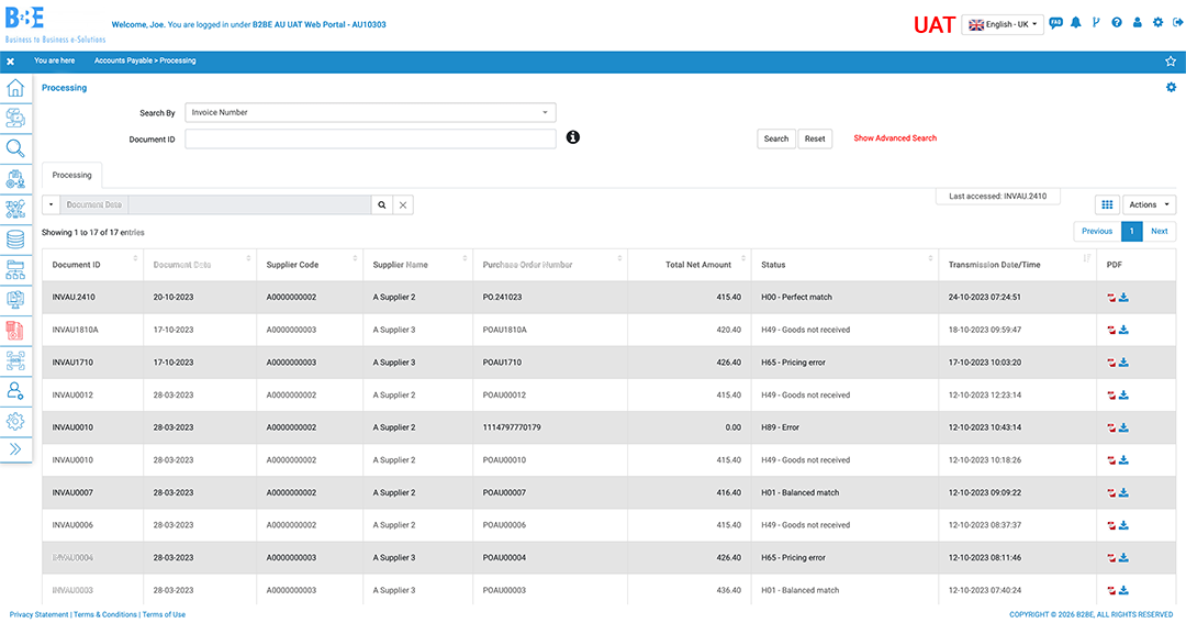 ”If our clients can produce a file in any format and get it to B2BE they’ll build the translation maps and transfer it to our format. That works in reverse with our invoicing. Some ERP system autofax so we get them to produce a file which is sent by email to B2BE who convert it for us."